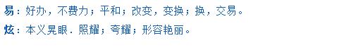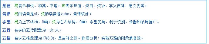 您在《天廷起名网》为您公司定制的名字已起好,已发到您邮箱,请到时注意查收。一共起了8套同命理的名字供你挑选。易炫 迈琪 琪翔 艺海 紫艺 炫凯 捷炫 魅炫 祝你好运,挑选一个最适合您公司的名字。徐天廷(风水皇)帮您公司取得名字点评如下: