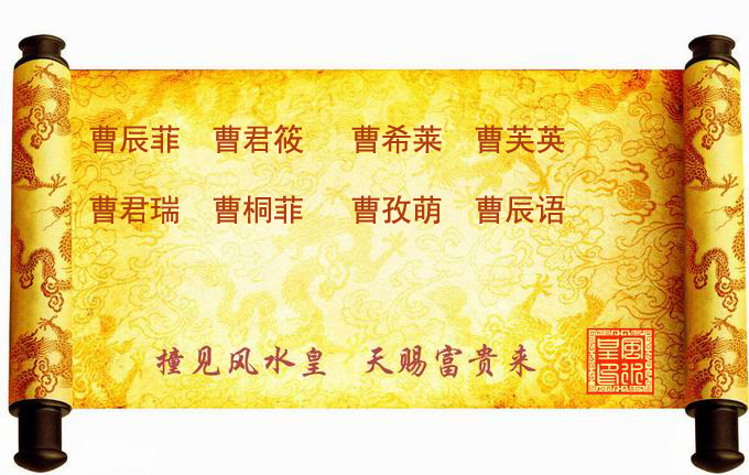 您在《天廷起名网》为您家宝宝定制的F型,富贵人生,稳健威仪相应的名字已起好。共8套方案:曹辰菲 曹君筱 曹希莱 曹芙英 曹君瑞 曹桐菲 曹孜萌 曹辰语 祝您的宝宝好运,挑选一个最适合您家宝宝的好名字。徐天廷老师帮您家宝宝取得名字点评如下: